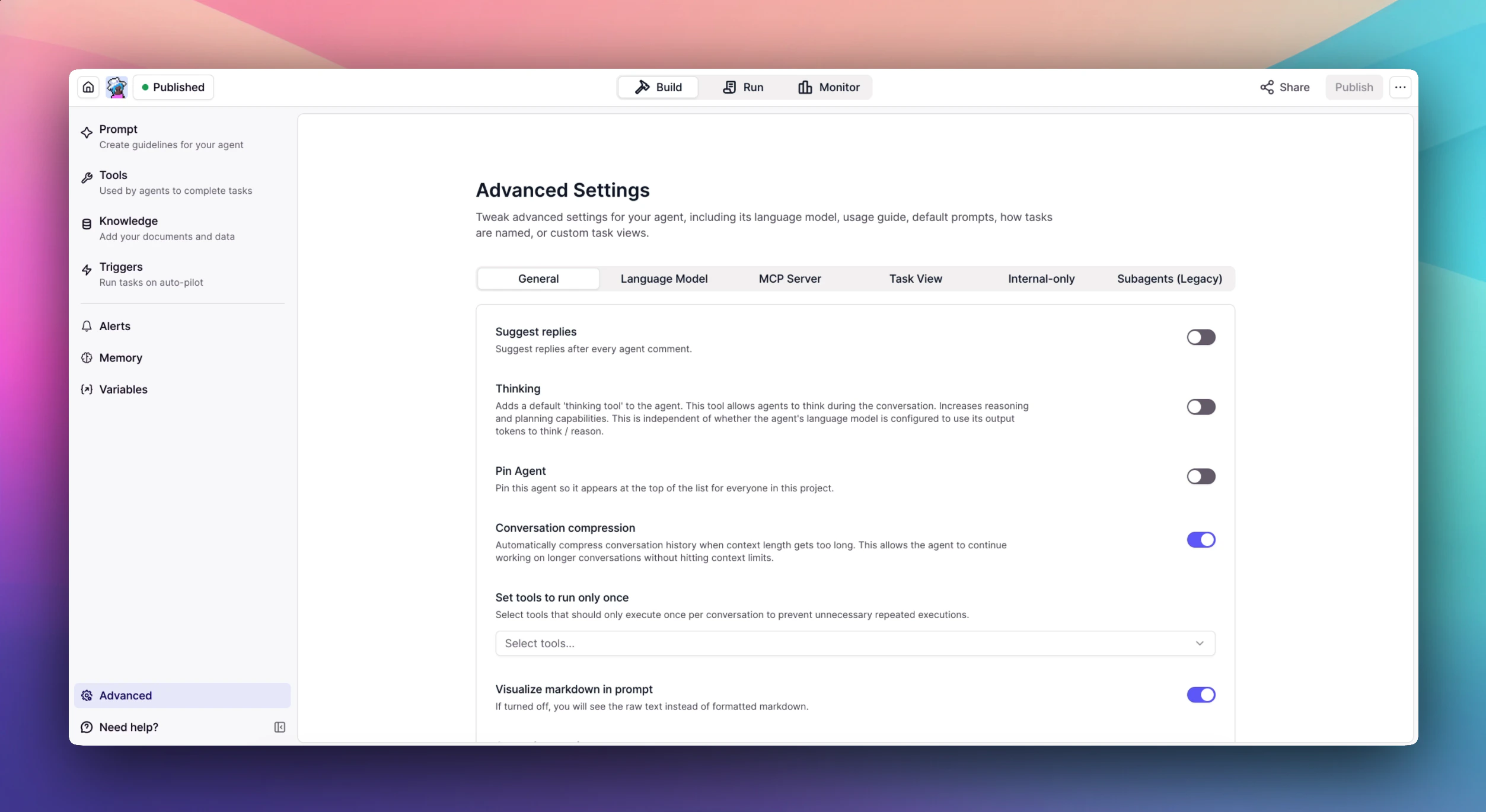 Simply toggle this on, and your agent will offer clickable reply suggestions after each of its messages.